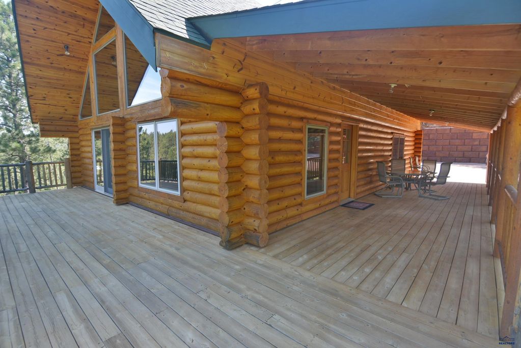Listed by, Jon Eizinger, of Sun Real Estate 605-484-4374. First time ever offered for sale, secluded custom log home on 7.44, 4 bedrooms, 3 baths, large master suite with extra storage, 3 car 26x32 garage, zero entry one level living.